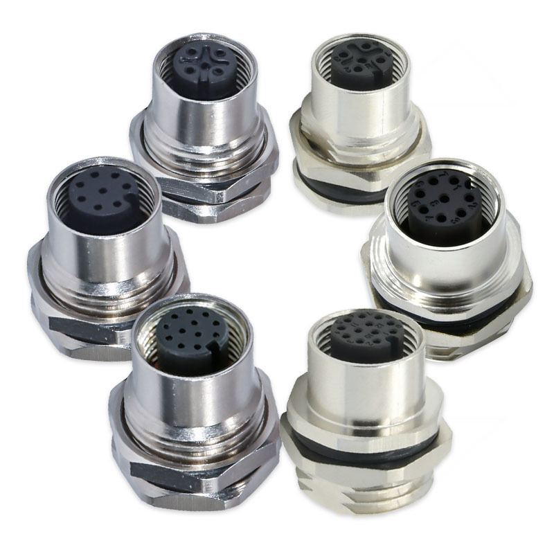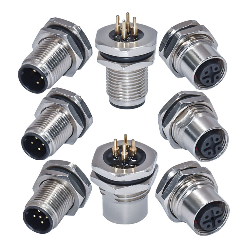 Hochwertiger M12-Anschluss mit 90-Grad-Konfiguration, erhältlich in mehreren Pin-Konfigurationen (3, 4, 5, 8, 12, 17 Pins) für PCB-Sensor-Anwendungen.geeignet für sowohl männliche als auch weibliche Verbindungen in Automobil- und Industrieumgebungen.