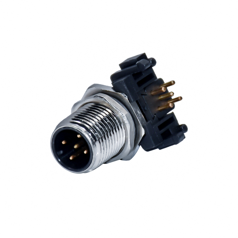 Hochwertiger M12-Stecker mit 90°-Winkeldesign, erhältlich in A-, B-, C-, D- und X-Codierungstypen mit 3, 4, 5, 8, 12 oder 17 Pin-Konfigurationen. Geeignet für PCB-Sensoranwendungen mit Stecker- und Buchsenoptionen.